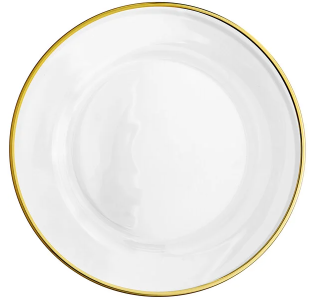 13" Round Gold Rim Glass Charger Plate